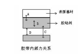 上圖A表示膠粘劑與基材粘接力,反映膠與基材的密著性情況,A和B值大于C值是理想的狀態(tài),特別是再剝離型(低粘性保護(hù)膜類)膠帶必須達(dá)到的要求,如果A值比B或C小的時(shí)候,剝離后會(huì)出現(xiàn)膠殘留到被粘物上。